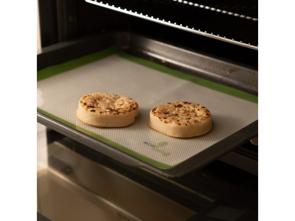 Rozlučte se s jednorázovým pečicím papírem. Tato opakovaně použitelná nepřilnavá podložka promění vaše staré plechy na funkční povrchy jako nové! Díky nepřilnavému povrchu není třeba přidávat žádné tuky – pečení tak bude zdravější. Podložku můžete využít také jako protiskluzovou pracovní plochu.